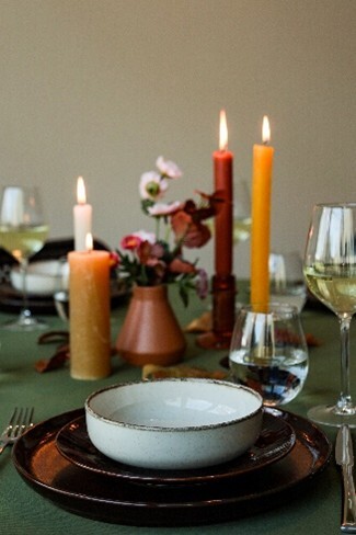 - Ton-in-Ton-Tafeln: Geschirr in einer Farbfamilie mit kleinen Unterschieden in Farbton und Struktur. Denk an Creme, Sand und Beige, die zusammen eine ruhige, luxuriöse Basis bilden und perfekt zu natürlichen Materialien passen.