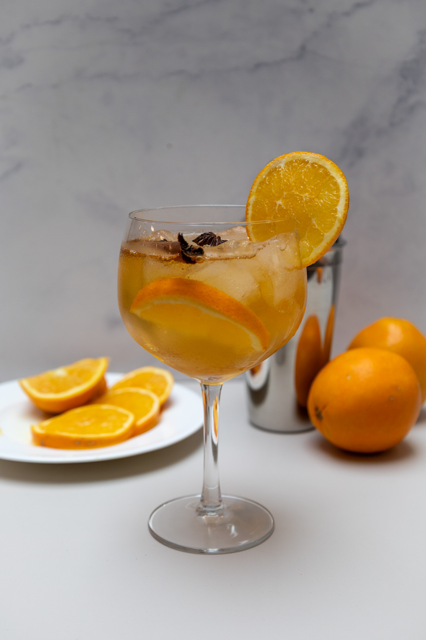- Garniere mit einer Orange, einer Zimtstange und Sternanis.