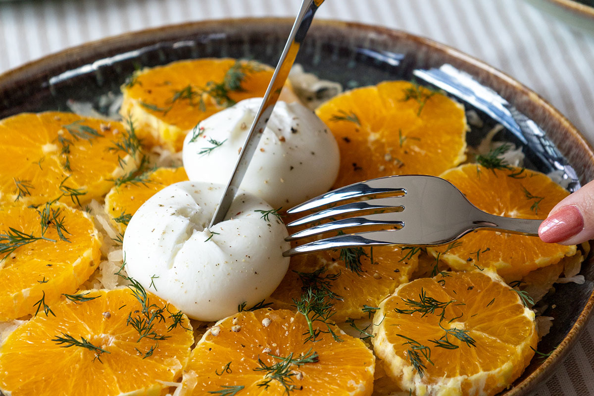 Fancy a fresh, light, and surprising dish? This citrus carpaccio is perfect as an appetizer or a light lunch. The combination of juicy orange, creamy burrata, and fresh toppings creates a lovely balance of sweet, tart, and creamy flavors. It’s a dish that not only looks stunning on the table but also tastes wonderfully refreshing. Ideal for sunny days or as a light starter for dinner.